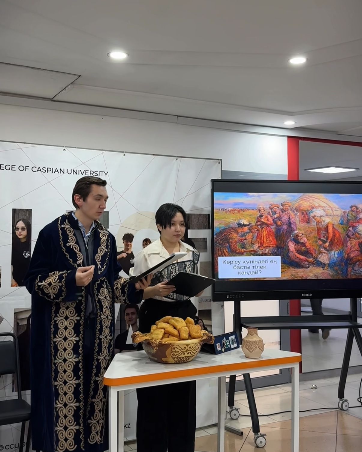 В колледже состоялось мероприятие, посвящённое празднику «Көрісу күні». Оно прошло на 6-м этаже учебного корпуса и было организовано преподавателями ЦМК общеобразовательных предметов — истории, казахского языка и литературы, русского языка, а также заведующей библиотекой совместно со студентами группы ТК-25-1.
